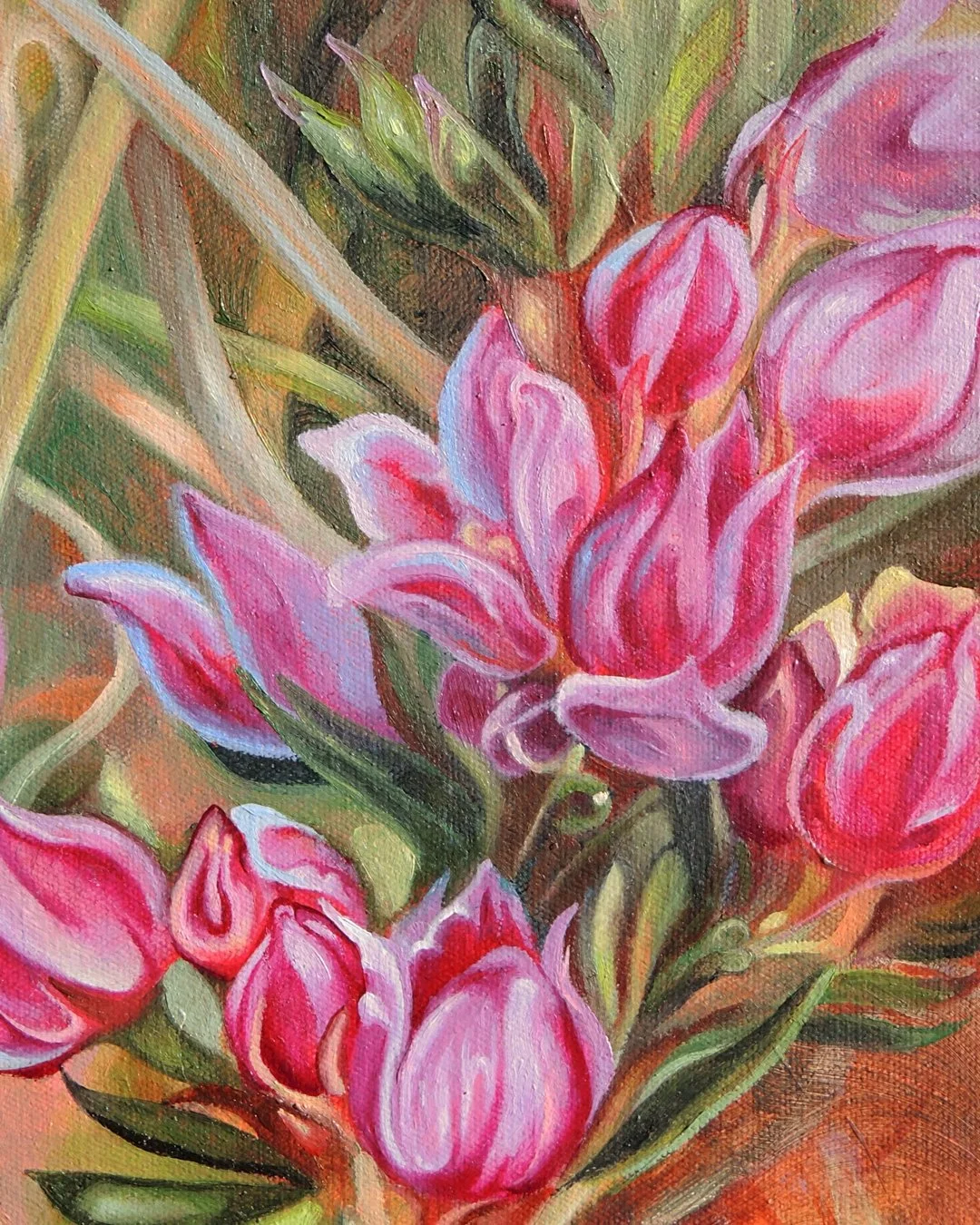 Above: Detail of “Silk Phantom” 2024. Oil on canvas.